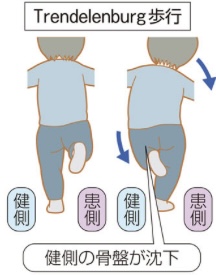 痛みを回避するためにお尻が引けたり、お尻が左右に揺れるトレンデレンブルグ歩行と言った跛行が見られ、これが続くと更にお尻周りの筋力(大殿筋や中殿筋など)が低下します。