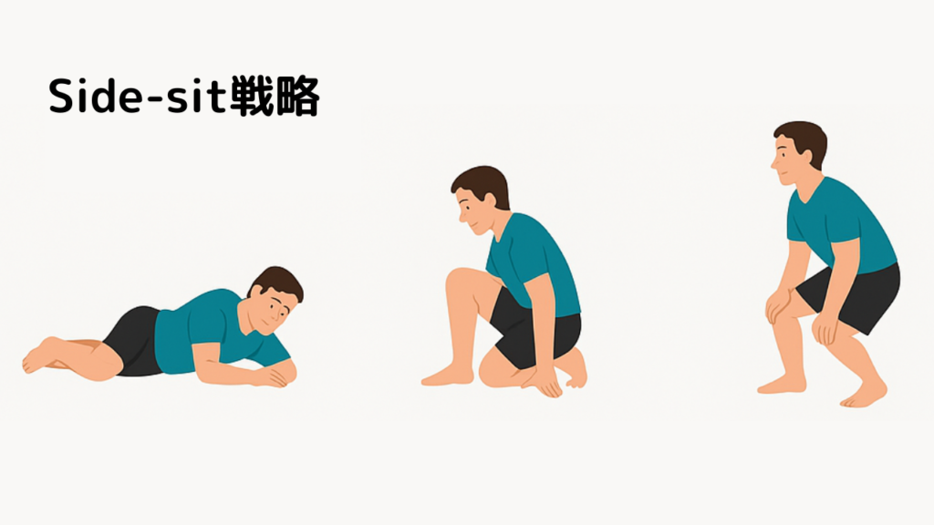 Side-sitやRoll-overは、筋力的な負担が少なく、より広い高齢者層にとって現実的な選択肢といえます。